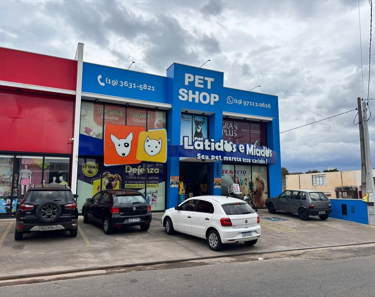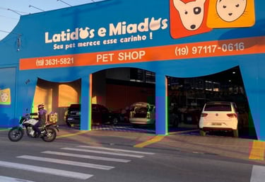 A Latidos e Miados é um PetShop em São João da Boa Vista com duas lojas físicas, oferecendo cuidados completos para cães e gatos, como consulta veterinária, banho e tosa, táxi dog e disk entrega, sempre com carinho e atenção.